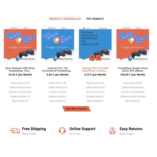 Sito web del servizio hosting Servermac specializzato in Prestashop